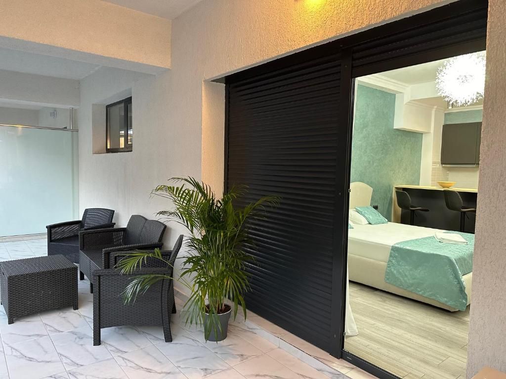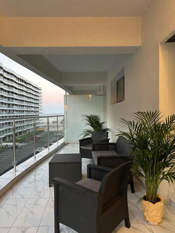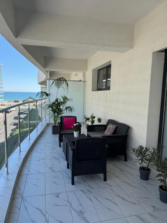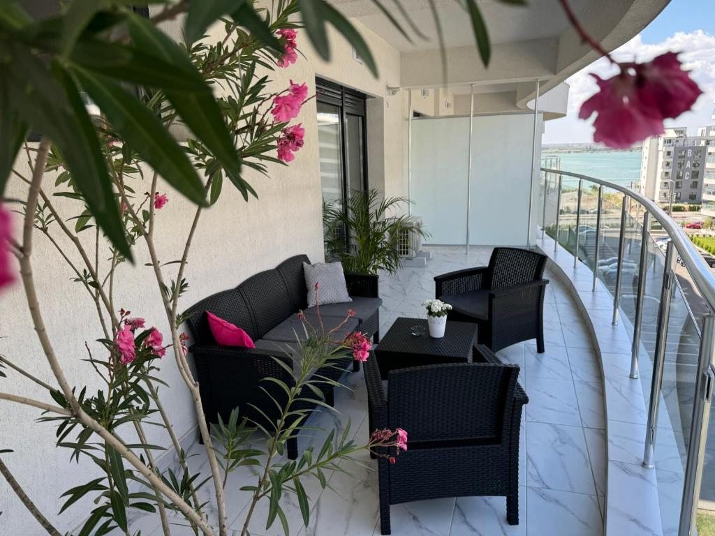 Un alt avantaj pe care îl vei aprecia enorm, mai ales în zilele toride de vară, este faptul că terasa și studioul nu sunt expuse direct razelor soarelui. Asta înseamnă că poți savura dimineața o cafea pe balcon, sau te poți relaxa seara cu un pahar de vin, fără să simți arșița specifică litoralului. În interior temperatura rămâne confortabilă, iar pe balcon te poți bucura în voie de briza mării, fără să „mori de cald”.