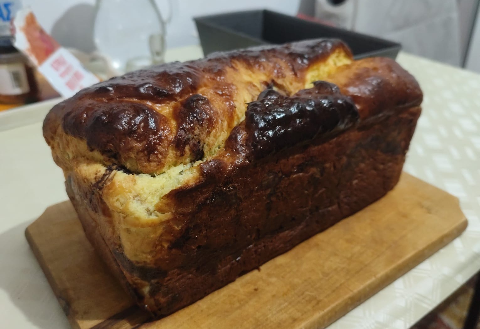Coaceti cozonacul fara ventilatie, la 155-160 de grade pentru aprox. o ora. Daca folositi ventilatia, scadeti temperatura cu 15-20 de grade pentru a nu ramane crud. Dupa ce s-au copt lasati cozonacii in tava sa se raceasca, un pas important pentru ca ei sa isi pastreze forma.